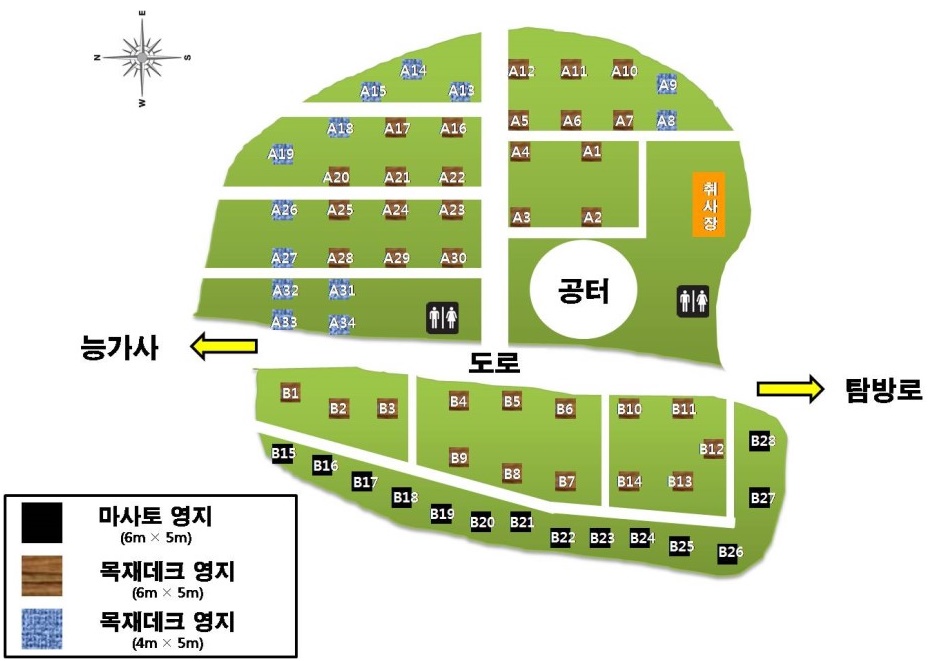 - 사이트 배치도 (주차장 쪽부터 1번이며, 9번 사이트만 가로)